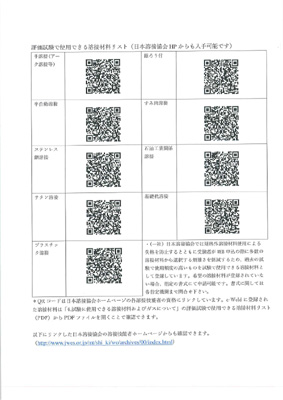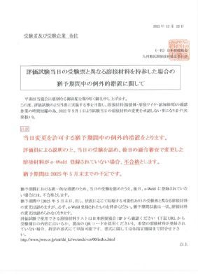 【添付1:試験当日の受験票と異なる溶接材料を持参した場合の猶予期間中の例外処置に関して】